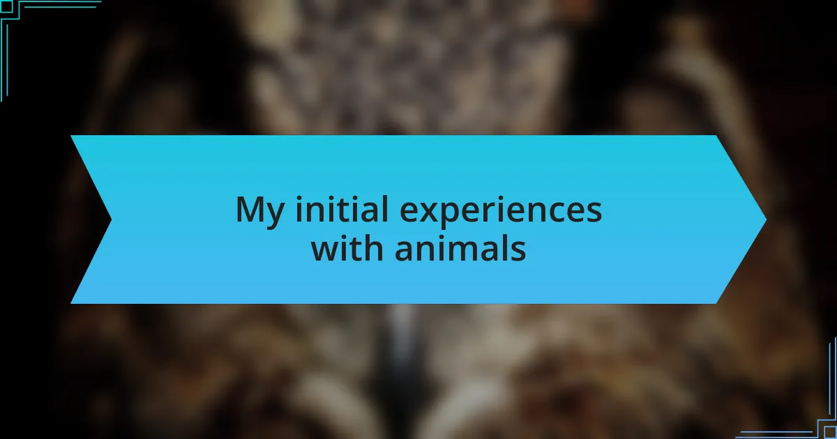 My early encounters with animals were filled with vibrant emotions and unforgettable lessons. I distinctly remember the first time I helped care for a stray dog at a local shelter. The moment our eyes met, I felt an undeniable connection. I can still recall the way his tail wagged with hope—a hope I vowed to nurture.