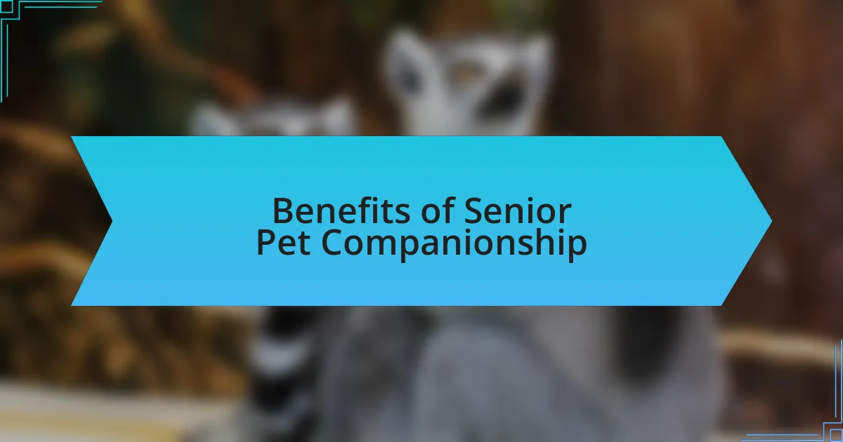 The companionship of senior pets brings a unique sense of comfort that’s hard to find elsewhere. I remember bringing home a golden retriever named Max, who, despite his age, had an uncanny ability to sense when I was feeling down. It was as if he knew just the right time to nuzzle up close, offering reassurance that everything would be okay.